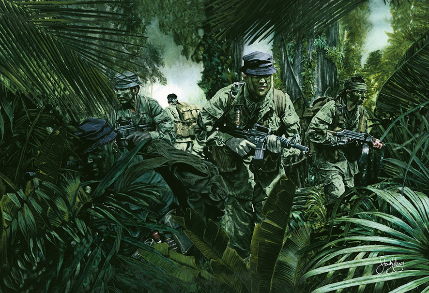 Each painting is not only thoroughly researched, but is informed by the artist's own unique special operations experience and supported by a community that has shaped history.